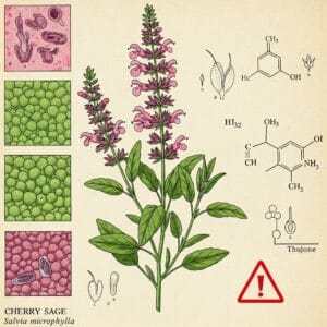まず押さえておきたいのは、チェリーセージがシソ科サルビア属の植物であることです。この属には数多くの品種が含まれており、中には「ツヨン(thujone)」という神経系に影響を及ぼす成分を持つ種類も存在します。